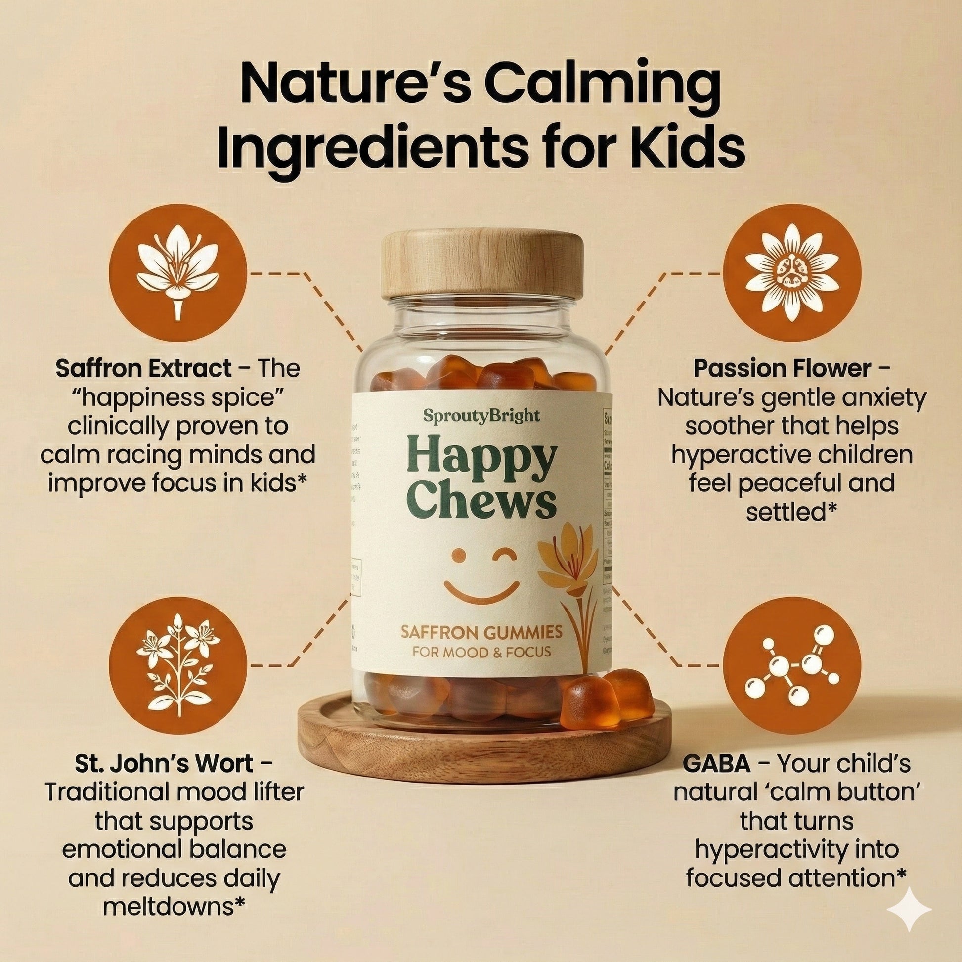Yes, absolutely. Our saffron gummies are made with clinically-studied dosages specifically safe for children ages 4-12. Saffron has been used safely for centuries, and our formula contains the same amounts shown effective in pediatric research studies. Each gummy is third-party tested for purity and contains no artificial stimulants or harsh chemicals.